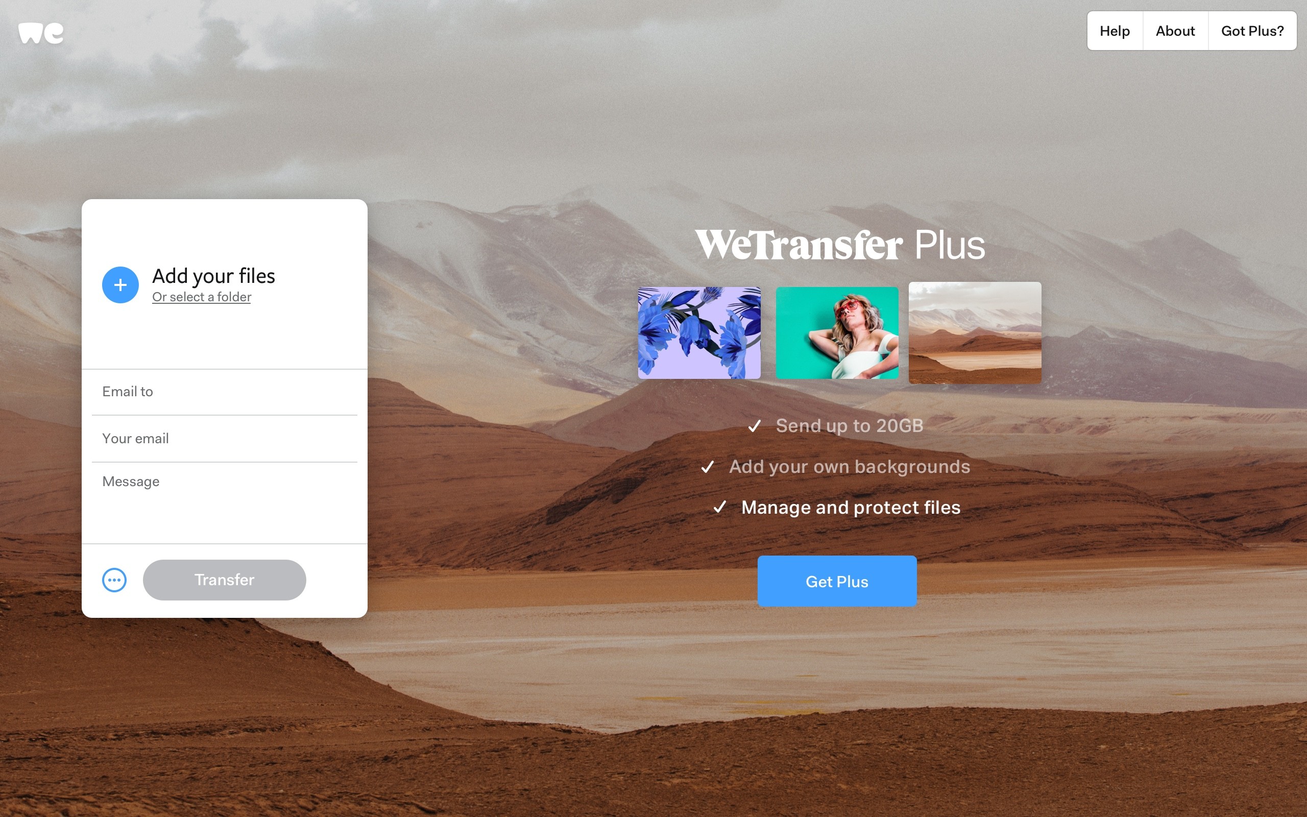 WeTransfer Free Account Landing Page